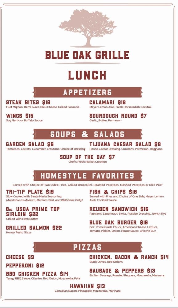 Indulge in good food, vibrant atmosphere, and memorable experiences! Blue Oak Grille is more than just a restaurant; it's a place where flavors and friendliness unite.